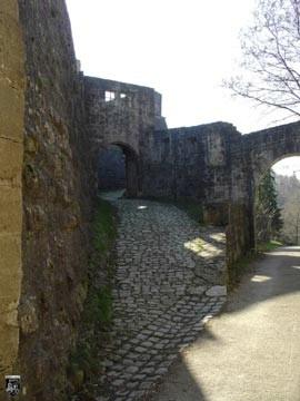 Der Zugang erfolgt heute wie damals über eine steinerne Brücke, die den breiten Graben überspannt. Direkt dahinter schließt das erst Tor an. Ein Teil der Steinbrücke war ursprünglich eine Zugbrücke. Das Tor gehört zu einem Vorwerk, durch das ursprünglich eine Handelsstraße führte. Das Vorwerk wird von der linken Seite durch einen höher gelegenen Zwinger flankiert.