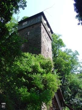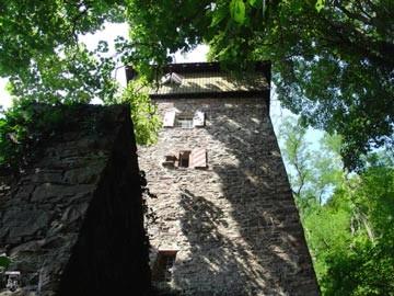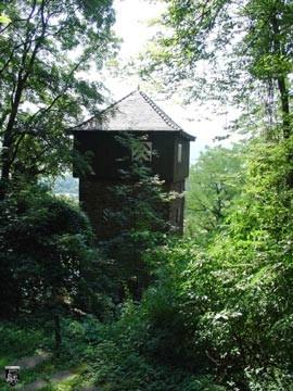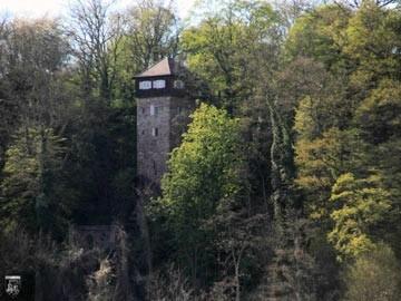 Der Turm ist das einzige vollständig erhaltene, bzw. restaurierte Gebäude. Er ist 20m hoch und besitzt eine Grundfläche von 6 x 6m. Zahlreiche Fenster wurden mit Fensterrahmen und Glas verbaut. Auf dem Dach trägt er ein Stockwerk aus Holz mit aufsitzendem Spitzdach. Der Wohnturm ist aufgrund seiner dünnen Außenmauern ein so genannten Luginsland. Er diente also eher der Überwachung, als der Verteidigung und Zuflucht wegen. Zum Bergrücken hin weist er eine verstärkte Mauer auf und diente zusammen mit der Schildmauer zum Schutz vor einschlagenden Geschossen. Im Inneren des Turms befindet sich ein gut erhaltenes Verlies. Ungewöhnlich für einen Turm dieser Breite ist eine Treppe, die im Mauerwerk liegt und über sehr enge Gänge die Stockwerke verbindet. Eine weitere Besonderheit ist ein Abortschacht, der im Inneren des Gebäudes nach unten verläuft.