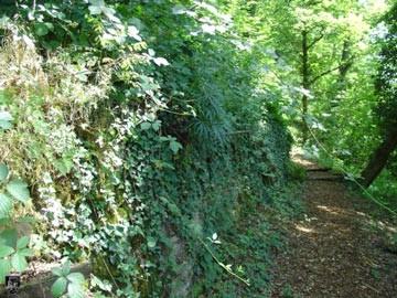 Vom Halsgraben gabelt sich der Weg in drei verschiedene Richtungen. Der eine führt in den Halsgraben, der andere in die Burg und der dritte Richtung Osten, aus der Burg in den Wald hinein, wo zum Teil noch alte Treppen zu den einzelnen Terrassen zu finden sind, die im 19. Jahrhundert oder früher dem Weinanbau dienten.